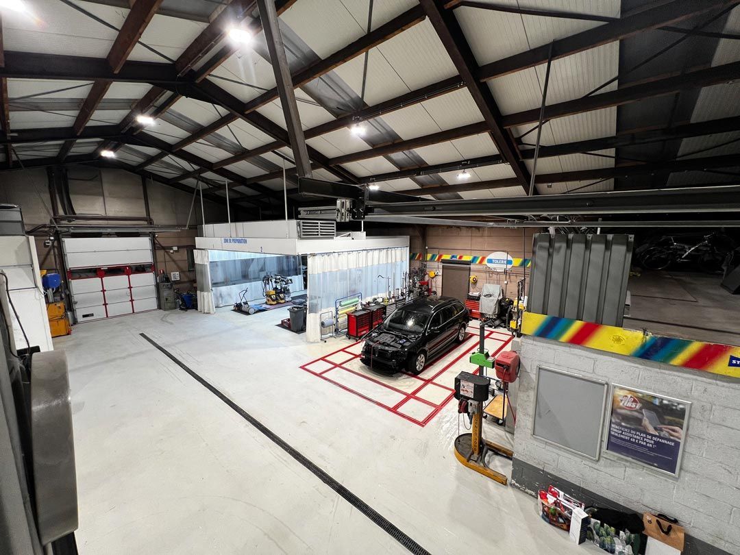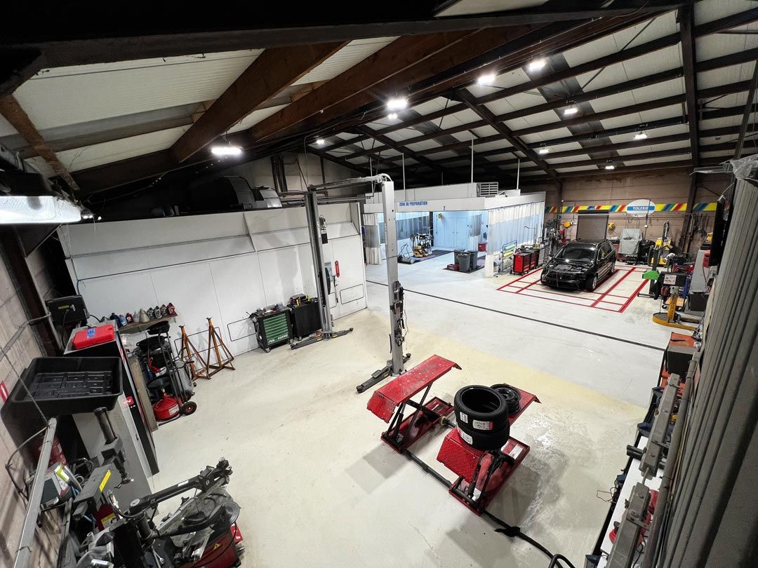 Nous possédons des installations pour effectuer la peinture au four et la mise sur marbre des véhicules.